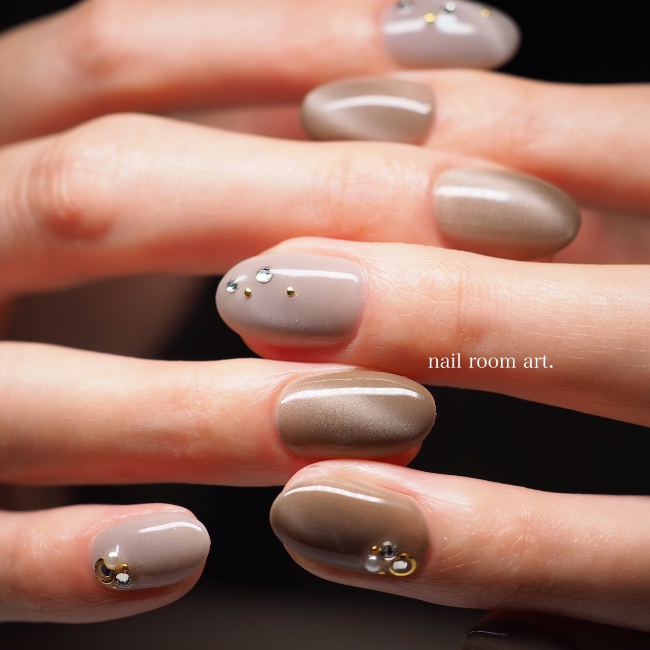 オールシーズン ハンド シンプル ブラウン グレー Nail Room Art のネイルデザイン No ネイルブック